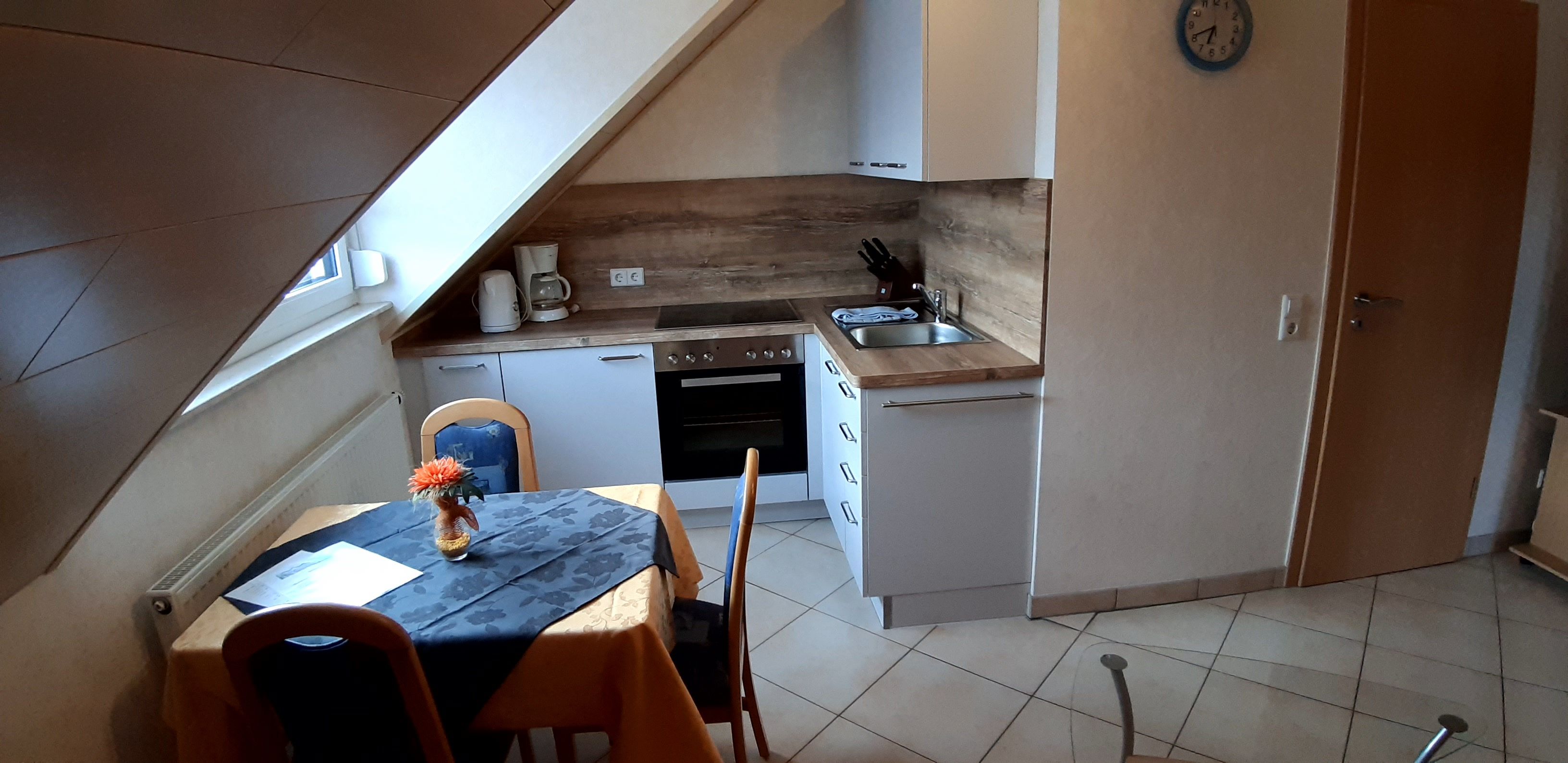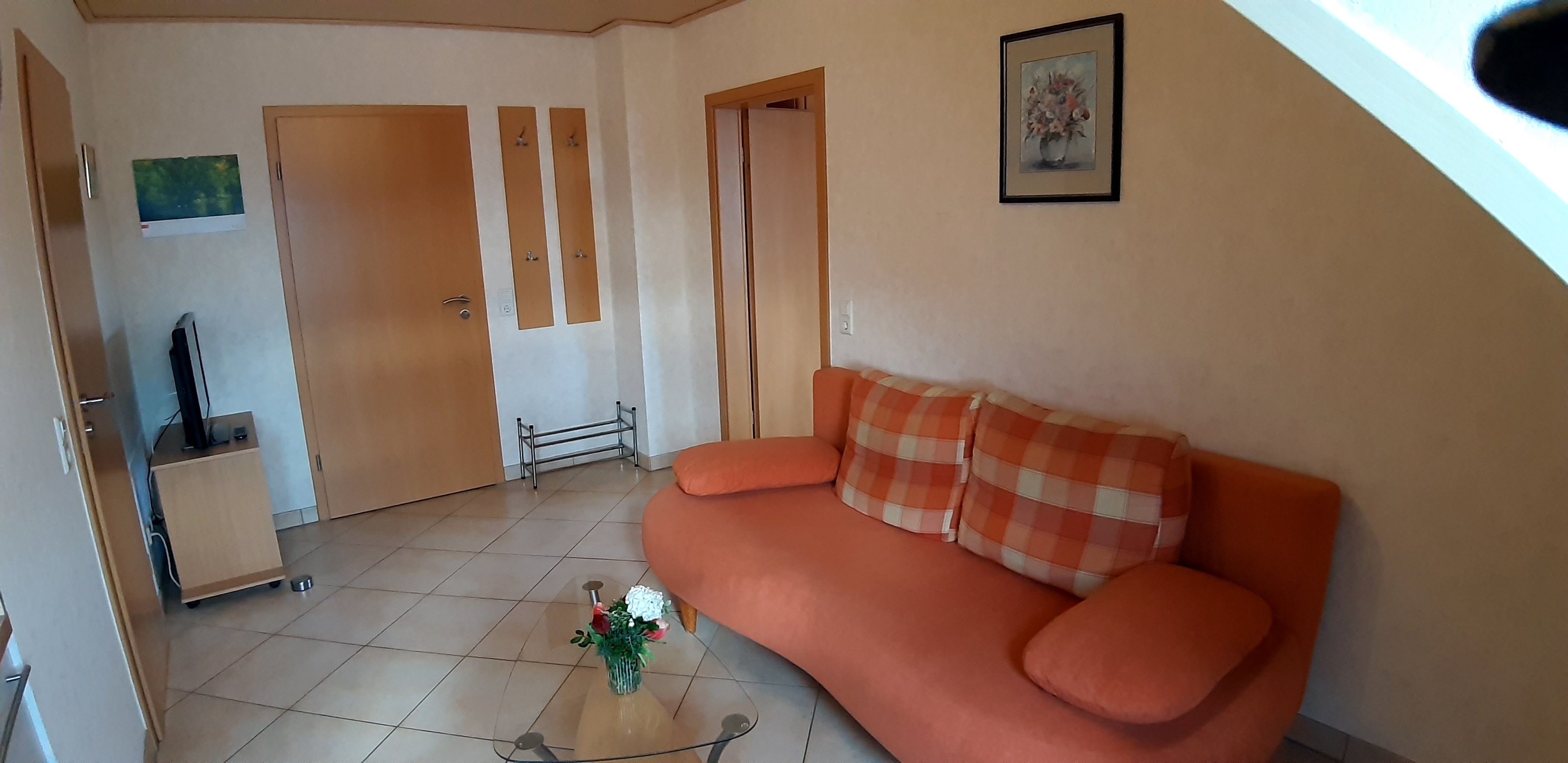 Die 40 qm große Ferienwohnung befindet sich im ersten Stock mit großem Balkon. Zuschlag für eine Übernachtung pro Person 5,-€